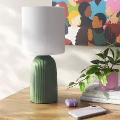 Fluted Ceramic Table Lamp: ETL Listed, Cotton/Polyester Shade, No Assembly – Room Essentials™
