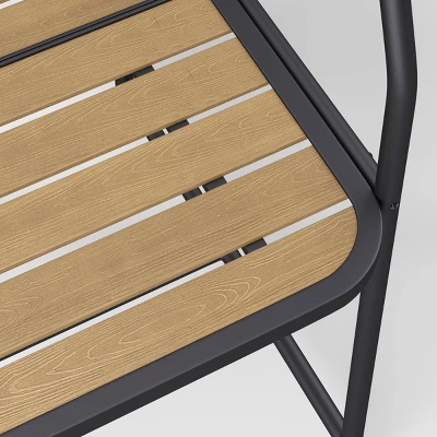 Create a beautiful dining space surrounded with your favorite plants with the Rectangle A-Frame Pergola Patio Dining Table from Room Essentials™. This rectangle dining table features an A-frame with hooks for holding planters. Made of steel in a powder-coated finish, this patio dining table has a slatted tabletop with an umbrella hole to keep you all shaded, and it’s rust resistant for lasting outdoor use.